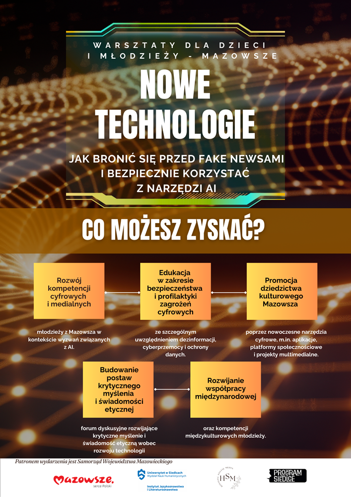 W murach Uniwersytetu w Siedlcach doszło do niezwykłego spotkania pokoleń, które stało się okazją do głębokiej refleksji nad kondycją współczesnego człowieka w świecie zdominowanym przez ekrany smartfonów. Uczniowie szkół średnich, ramię w ramię ze studentami siedleckiej uczelni, wzięli pod lupę cyfrową rzeczywistość, szukając odpowiedzi na pytanie: jak nie zgubić siebie w gąszczu nowoczesnych innowacji? Projekt pod nazwą „Gen tożsamości i bezpieczeństwa społecznego w erze algorytmów – Mazowsze jako przestrzeń dialogu i innowacji społecznych”, realizowany przy wsparciu Samorządu Województwa Mazowieckiego, okazał się czymś znacznie więcej niż tylko kolejną lekcją o informatyce. Był to żywy dialog o emocjach, relacjach i bezpieczeństwie, który połączył nowoczesne technologie z tradycyjnymi wartościami naszego regionu.