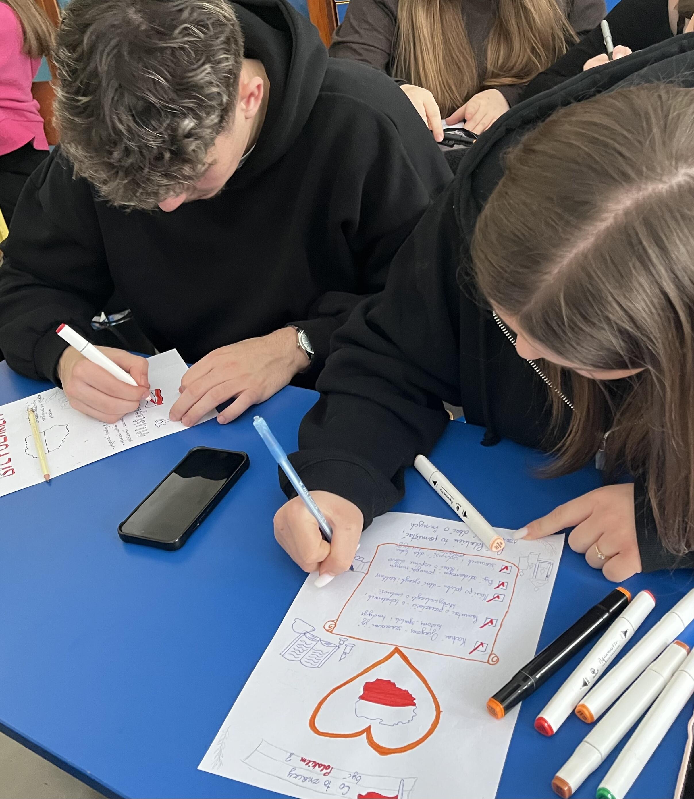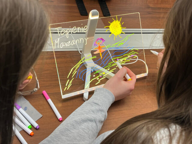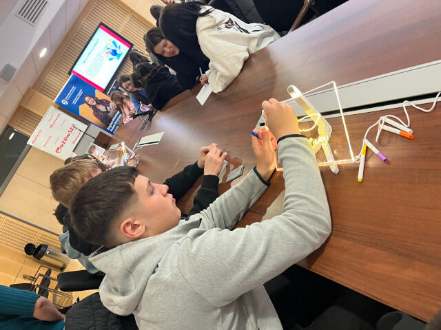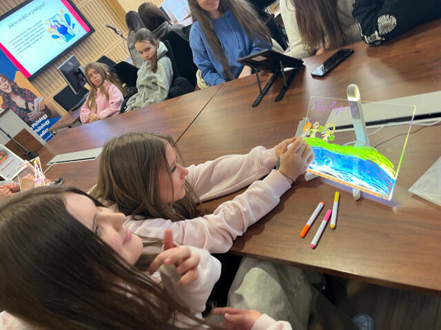 Warsztaty miały także część twórczą – uczniowie projektowali plakaty, tworzyli infografiki i mapy myśli, a także uczestniczyli w interaktywnej grze poświęconej marketingowi i bezpieczeństwu w sieci. Wykorzystując tablety graficzne, młodzież przygotowywała scenki sytuacyjne, których wykonanie wzbudziło wiele emocji i entuzjazmu. Zwieńczeniem wydarzenia była telekonferencja z młodzieżą z Zespołu Szkół Zawodowych nr 2 w Starachowicach, podczas której rozmawiano o wartościach w reklamie i roli języka w komunikacji z odbiorcą.